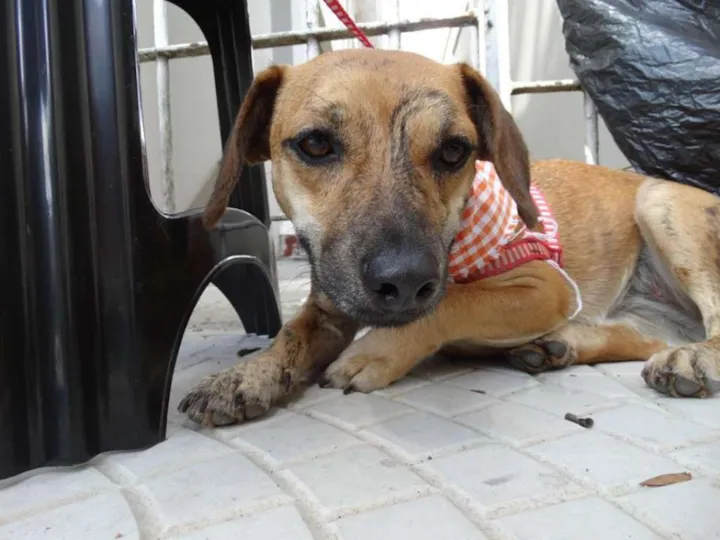 Tigrada, fêmea, porte pequeno, 1 ano. É uma cachorrinha muito assustada, mas dócil e carinhosa. Ideal ter um cãozinho para cia,.