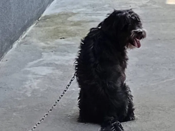 Este cachorrinho está, atualmente, no pátio de uma casa vazia. Seu tutor precisou mudar e não teve condições de levá-lo. Ele está sendo alimentado por vizinhos, mas não sabemos quanto tempo ele poderá ficar nesse pátio. Precisa urgentemente de um lar, muito amor e carinho.