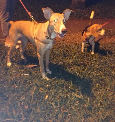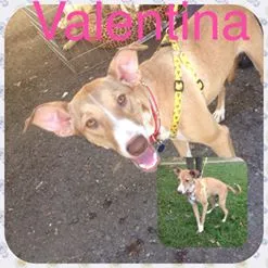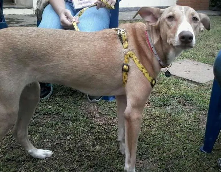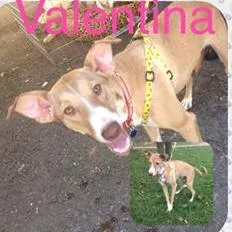 Valentina, esta com 8 meses, todas as vacinas, castrada, é muito docil e se da bem com outros animais porem é muita ativa, sabe andar na coleira e adora passear mas precisa de muros e grades altas pois ate se adaptar pode tentar fugir.