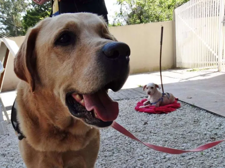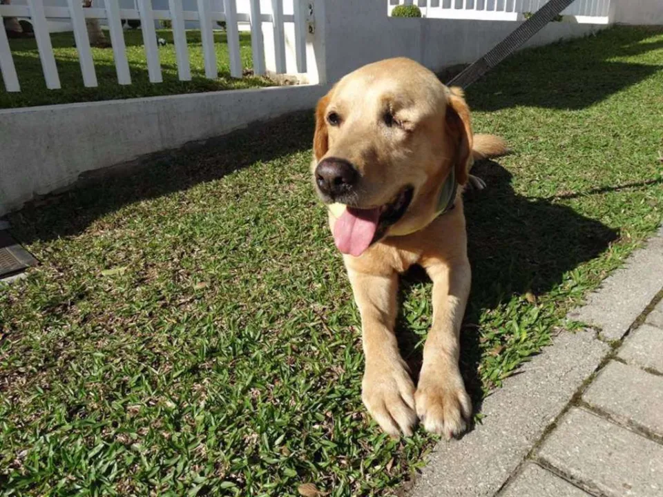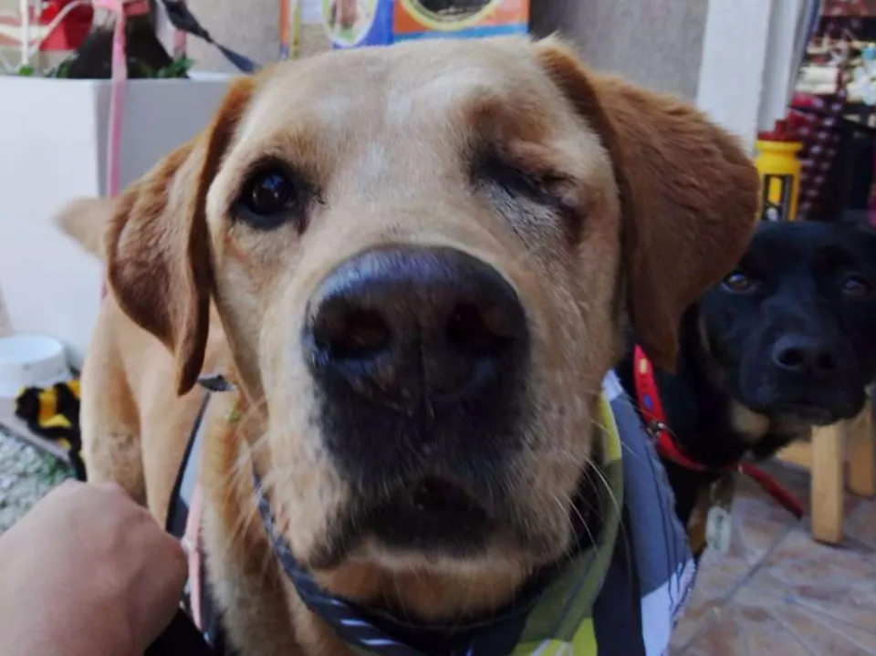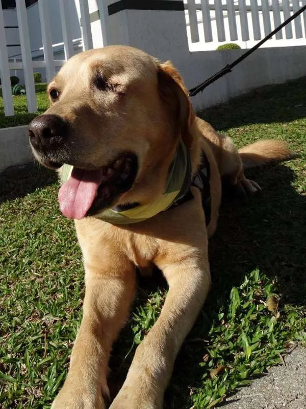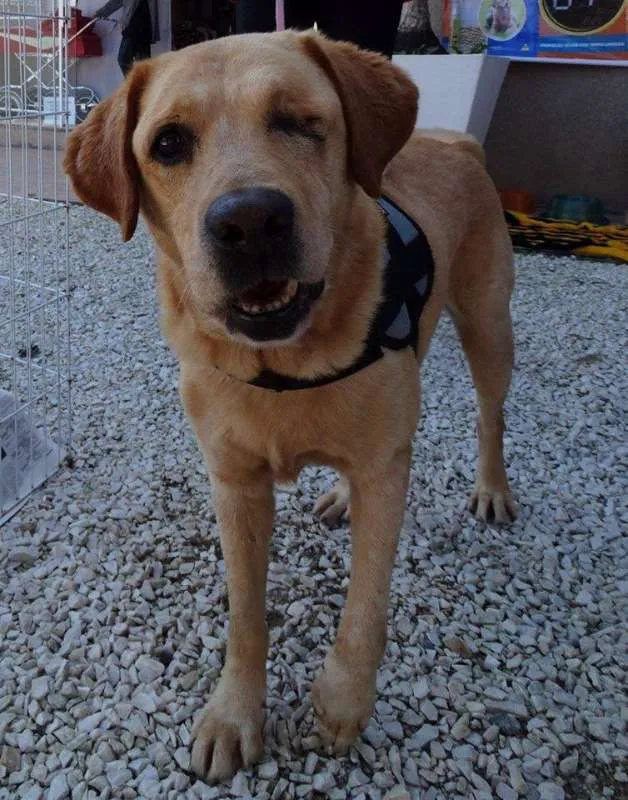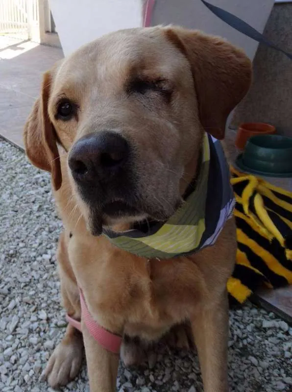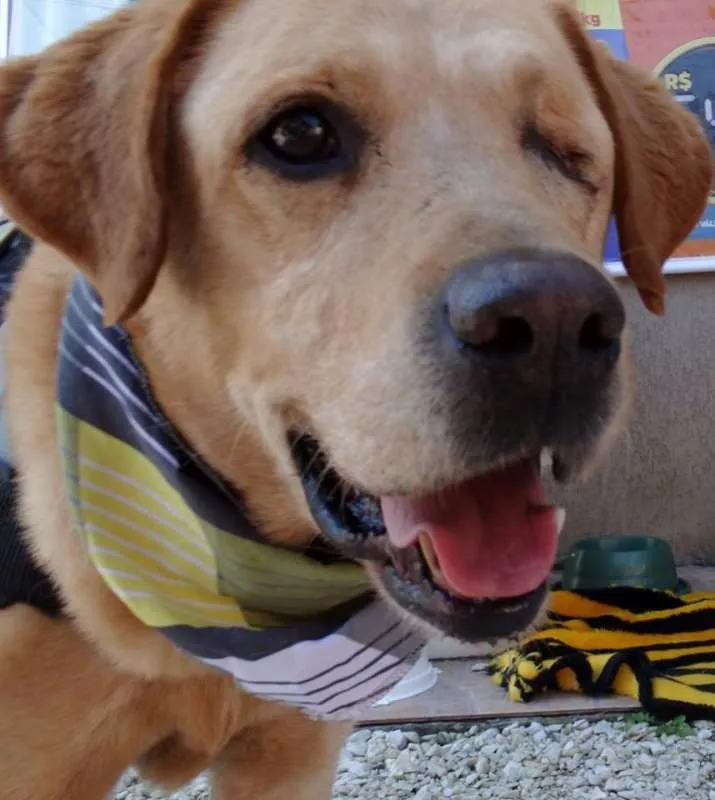 Zeus, é adulto, Porte Grande, está vacinado e castrado. Apesar de grande é um cão de cia, adora pessoas e se da bem com outros cães. Zeus perdeu um olho porém é um cão saudável que precisa de uma família. Anda bem de guia e adora passear seja em caminhadas ou de carro