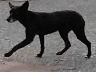 Cadela preta com rabo cortado, parece ser idosa, anda meio mancando