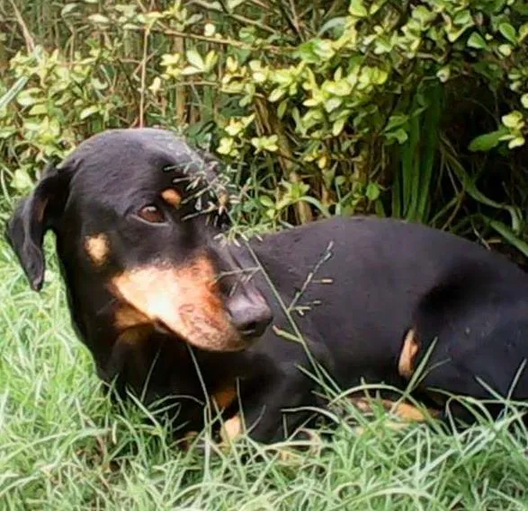 Encontrei um daschund preto no bairro Xaxim, dia 26/06/2013 nas imediações da Rua David Tows, 65, muito dócil, uma graça, mas um pouco assustado. As duas orelhas dele faltam um pedaço e está mancando um pouco.