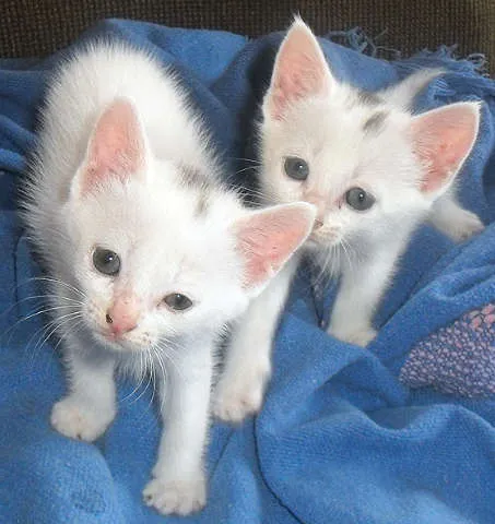 Adote gatinhos fofos! Casal de gatos brancos com mancha preta à procura de um lar. Venha conhecer e trazer amor para sua casa hoje mesmo!
