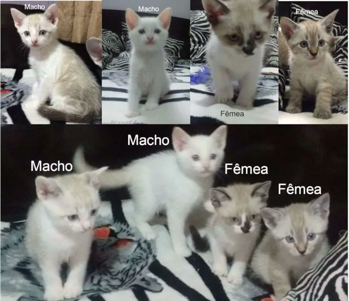 Eles estão com 45 dias, já desmamaram e estão prontos para um novo e definitivo lar