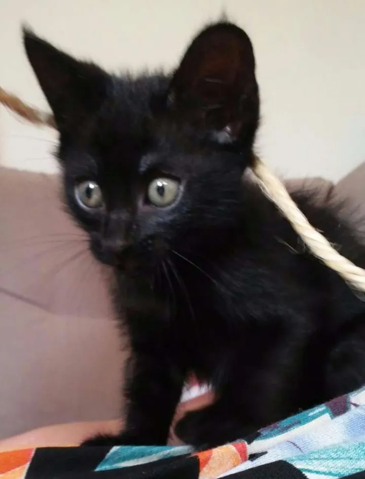 MACHO, PRETO COM OLHOS VERDES, E PARECE QUE SERA UM GATINHO BEM PELUDINHO.