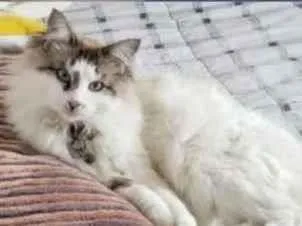 Gatinho com pelagem comprida branca, com manchinhas cinzas e pretas. Possui um rabo bem grande e peludo. É RENAL CRÔNICO E PRECISA DE CUIDADOS.. Um pouco medroso. Um doce de gatinho. Estava com coleira de identificação. Sumiu na Rua Fernando de Noronha, Boa Vista (Curitiba) no início da noite de 16/02. Atende pelos nomes Pinguinho, Pigo. Por favor, ajudem a localizá-lo. Estou em desespero