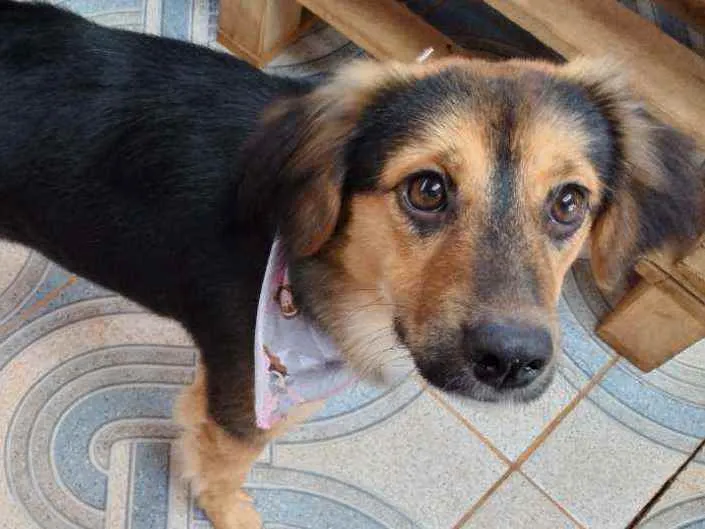 Essa é a Bolinha, ela tem 9 meses e é porte p/m.