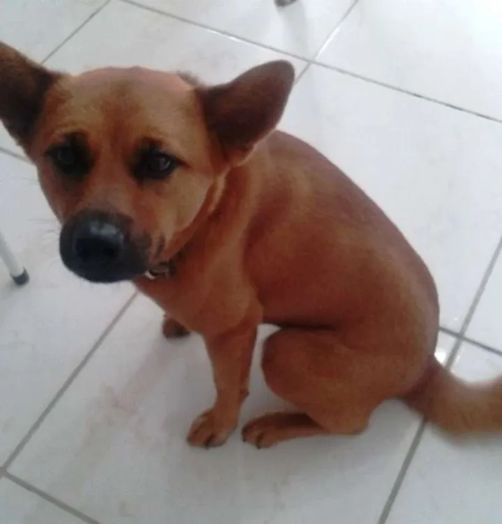 Lili desapareceu no dia 24//05, ela é bem dócil, porte médio, tem a língua manchada de roxo, pois é vira -lata com chau chau, estava co coleira de oncinha, ela é da cor caramelo.