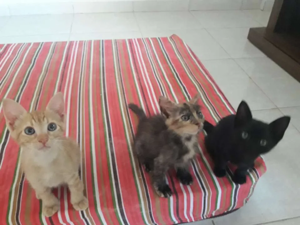 Estou procurando lar para três irmãozinhos abandonados que resgatei, é um gatinho macho amarelo (Alemão), e duas meninas, uma pretina (Pantera) e uma mesclada em preto e amarelo (Manchinha). Gostaria que os três seguissem juntos pois eles são muito apegados uns aos outros, mas caso não seja possível seguiremos com a adoção individual, o importante é que eles sigam em uma lar seguro.