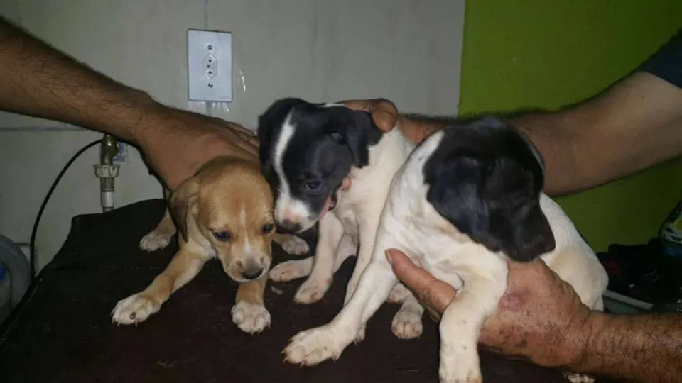 boa tarde deixaram uma caixa no meu portao com uma cadela e tres filhotes.recolhi porque ia chover mas nao posso ficar porque tenho quatro cães adultos.Sao 2 femeas brancas com pintas pretas e um macho marrom claro(caramelo) estaomais ou menos com 40 dias.tenho problemas de locomoção uso próese no quadril por isso nao foram vacinados ainda e nem no veterinário.nao tenho condições e levar tem que vir buscar moro em Londrina.Contato 998148062.nao sei porte porque sao fihotes e nao sei que tamnho vao ficar quando adultos agora sao pequenos filhotinhos.