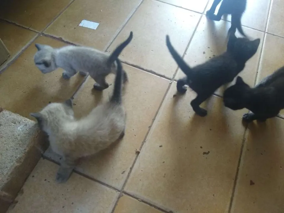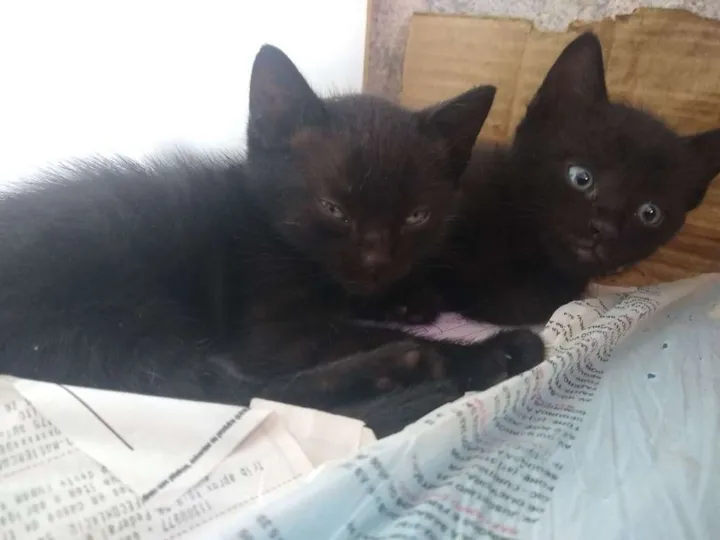 Já comem ração e bebem água. Estão com cerca de dois meses.