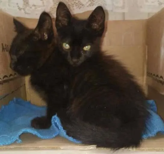 Encontrei os dois na beira de uma rua, quando passei vieram miando no meu pé, estranhei pelo fato de que normalmente gatos de rua são ariscos e não gostam de toque, mas esses são muito mansinhos, então acredito que nesse pequeno período desde que nasceram devem ter convivido com pessoas e foram soltos, nenhum sinal da mãe dos bichinhos, então os tirei de lá e trouxe pra casa faz uma semana. No entanto, não posso ficar com eles. Se alguém se interessar, por favor, entre em contato. Gatos crescem rápido.