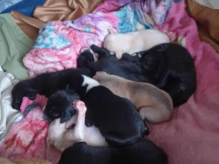 Esta mocinha foi abandonada próximo a nossa chácara em Mandirituba, deve ter sido abandonado porque estava prenha, abrigamos ela lá, porém moramos em Curitiba e estamos lá somente final de semana. Ela criou 9 filhotes e agora precisamos de ajuda para doar os pequeninos quando desmamarem. Meu tio está cuidando (alimentando ela, olhando os filhotes) lá na garagem da casa até ficarem maiores para adoção.