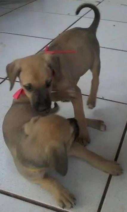 Encontradas abandonadas no final de agosto, 2 fêmeas com cerca de 45 dias ã época. Estão desverminadas, livres de pulgas e carrapatos. Pelagem curta, marrom claro, com focinho preto. Porte provável médio. Muito alegres e brincalhonas, já estão aprendendo a obedecer. Não tenho como ficar com elas, já tenho 2 animais.