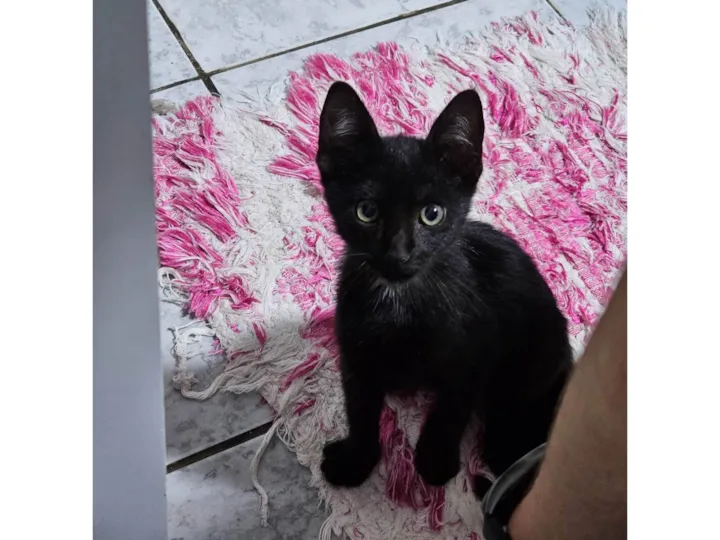 Apresento a vocês o nosso adorável gatinho macho, ele é um SRD (Sem Raça Definida) de pelagem preta, com menos de 2 meses de vida e um porte pequeno que vai derreter seu coração.