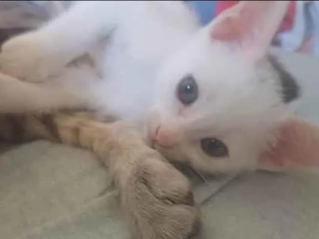 3 gatas brancas, duas com pequena mancha preta em cima da cabeça. Doação responsável individual ou mais de um. Já usam caixa de areia e comem ração seca. Sociável com outros gatos bem brincalhões