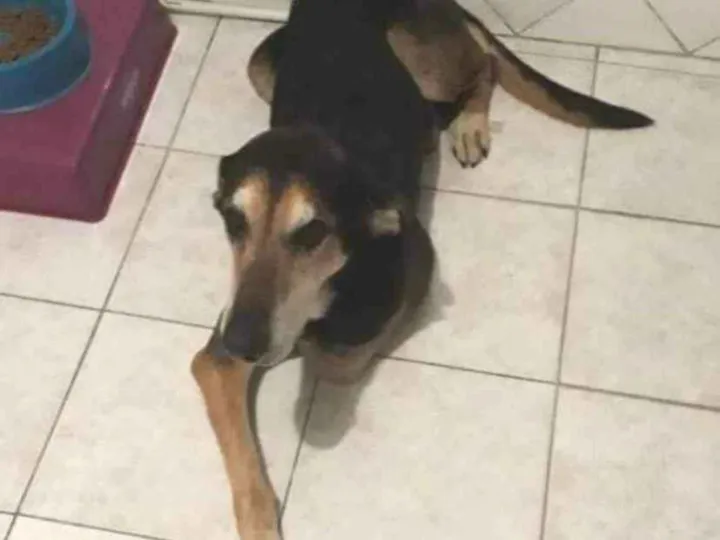 Tem uma orelha operada que não se move. Movimenta as orelhas até a metade. Tem patas grandes, gosta de latir mas não é feroz, as patas já estão um pouco fracas, tem focinho longo. Caminha pulando de um lado pro outro. Desapareceu em Nova Esperança e não foi visto mais.