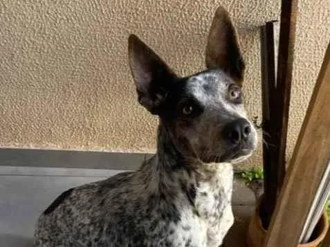 Seu pai é um Blue heeler puro e sua mãe uma vira lata.