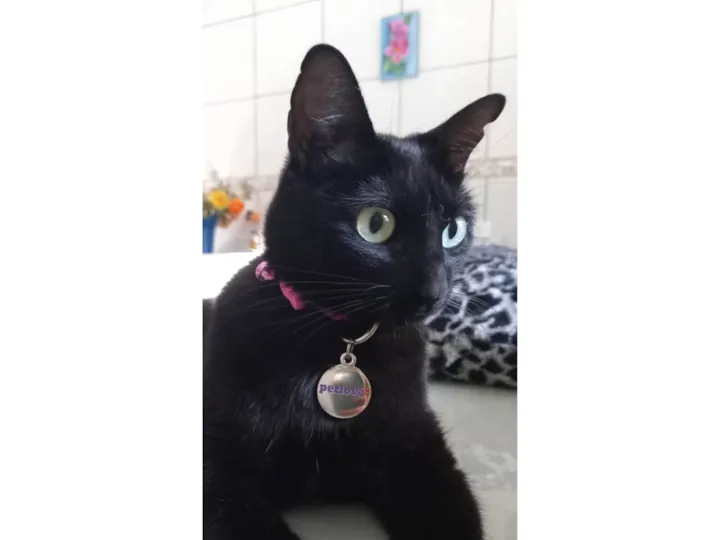Ela é preta inteira, olhos verdes, orelha esquerda com uma falha, usando coleira cor de rosa com placa de identificação de qrcode. É castrada, microchipada. Por favor ajudem minha.menina a voltar para casa, ela deve estar arisca e assustada. Qualquer informação entrar em contato: (44)99185-8220 ou (44)98857-8254