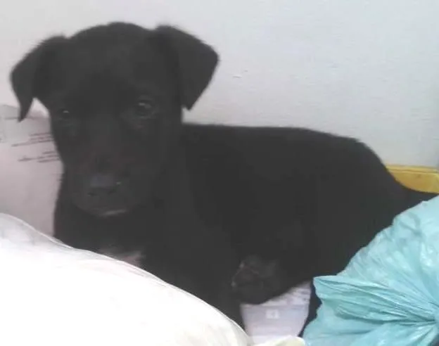 Recolhemos este filhote da rua, pois é muito novinho ainda, mas já temos dois cachorros adotados e não temos condições de ficar com mais um já que moramos em apartamento.