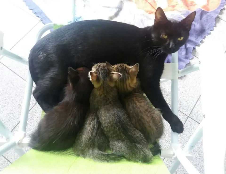 Fêmeas: 2 filhotes mourisco e a mãe preta