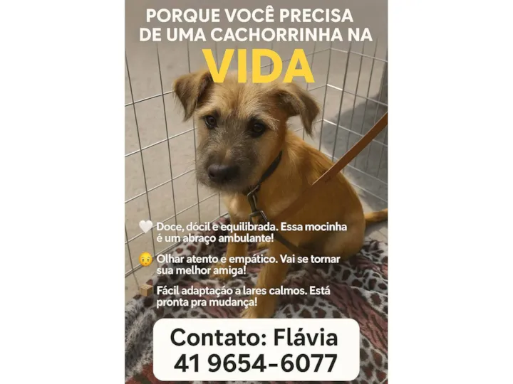 É o tipo de cachorrinha que conquista só de olhar – daquelas que parecem ter histórias para contar e que, com certeza, ofereceria muito amor, companhia e momentos fofíssimos a quem estiver por perto.