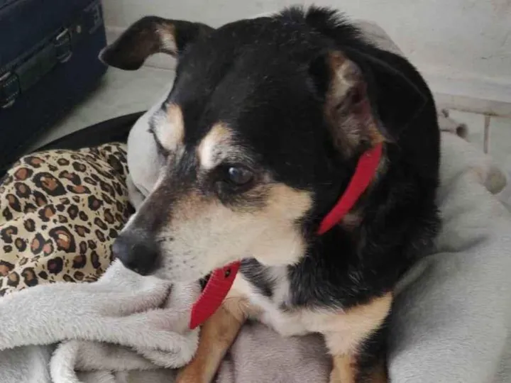 A cachorro desapareceu na Rodovia da Uva, próximo ao supermercado Rio Verde à 100 metros da entrada para o Contorno Norte. Ela estava com uma coleira vermelha, tem a pelagem predominante preta, com as pernas traseira marrom e mancha branca no peito. Trata-se de uma cachorro idosa.
