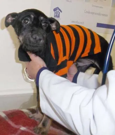 Julinho, já sofreu muito, já foi atropelado, já está com as duas doses da vacina e com castração agendada, ele tem uma plaquinha e parafusinhos no quadril devido ao acidente, mas anda, corre e brinca como um filhote normal, mas é uma adoção especial. Muito dócil e brincalhão