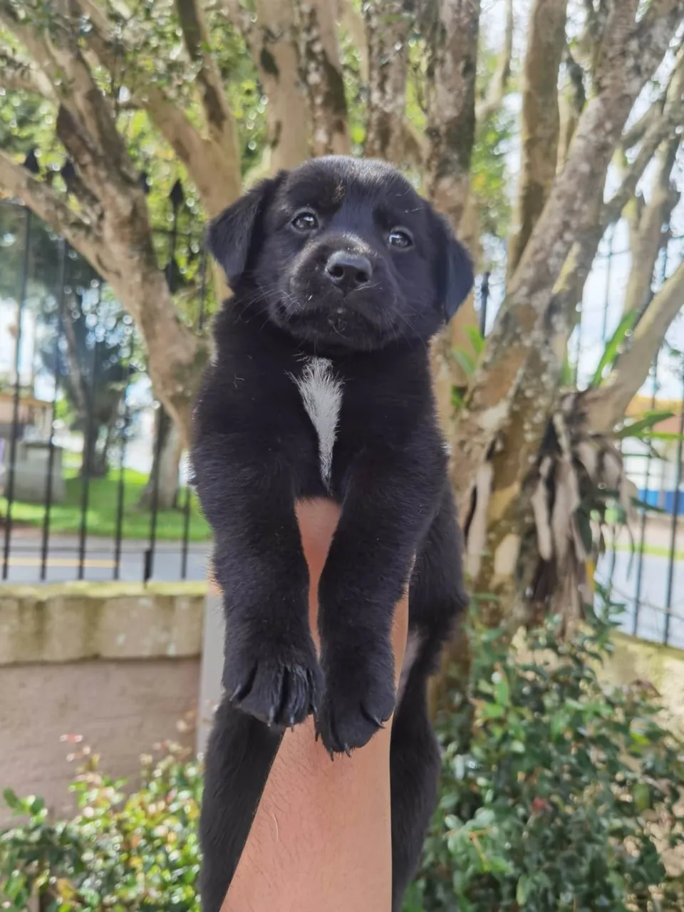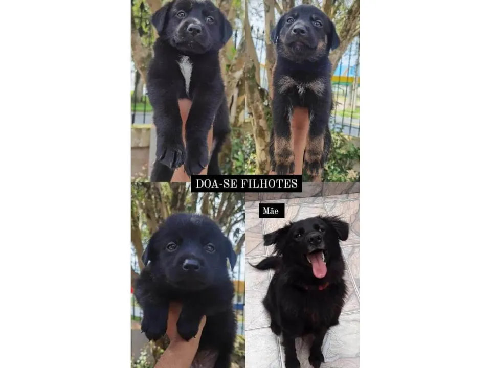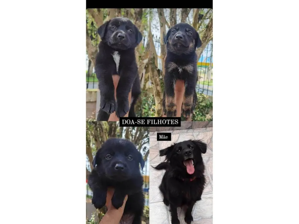 Os filhotes são identicos a ela. alguns tem apenas algumas partes dos pelos branco, como peito, patas.