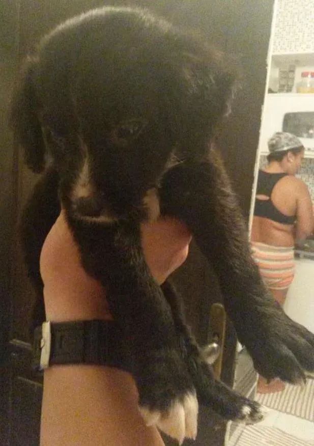 Estava correndo na costeririnha e.encontrei essa filhote abandonada na areia da praia sozinha faminta e sedenta peguei o filhote trouxe para casa mais não posso ficar com ele,moro no Rio e estou na casa de minha namorada aqui em angra agora a filhote está linda dei banho e comida gostaria de doar para não. Ficar na rua.