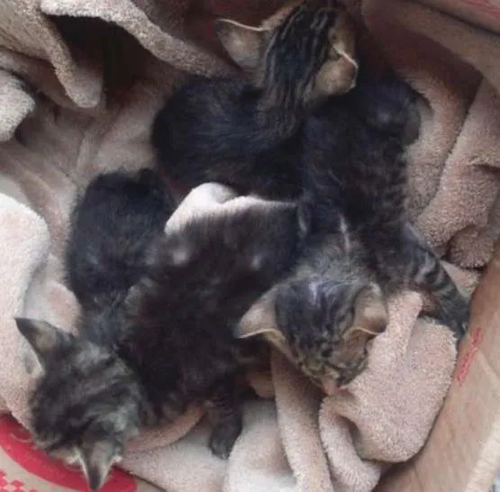 Minha Filha encontrou 4 gatinhos abandonados, Trouxe pra casa e já dei banho, passei Frontline para pulgas e carrapatos, limpei os olhos grudentos e passei colírio. Não posso ficar com eles, pois já adotei uma cadela, e duas gatas. E estamos desempregados eu e meu Marido, que se acidentou em setembro de 2015 e está precisando de cuidados. Graridão