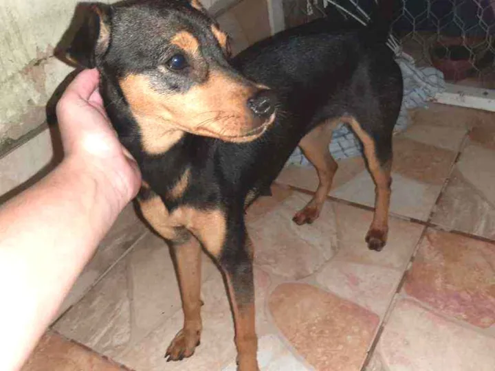 Encontrei esta cachorrinha nos arredores do bairro do Parque Hotel, em Araruama. Estava com a coleira arrebentada, por isso achamos que é de alguém. Muito amorosa e dócil