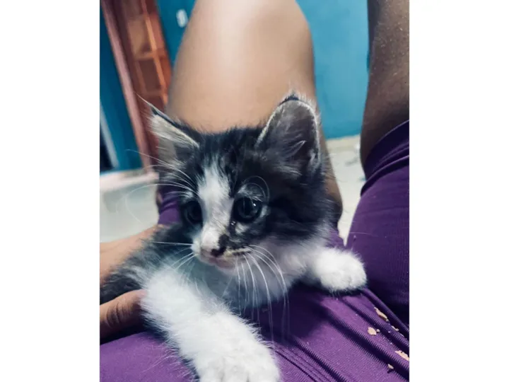 Esta filhote adorável está à procura de um lar amoroso onde possa crescer saudável e feliz. É uma gata SRD-ViraLata de pelagem branca e preta, com menos de 2 meses de idade e porte pequeno. Apesar de jovem, já demonstra um temperamento extremamente dócil, calmo e brincalhão. Além disso, é carente e adora receber carinho.