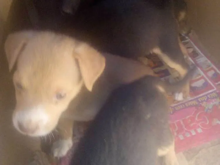 Encontrei esses filhotes de cachorros no mato dentro de uma caixa.