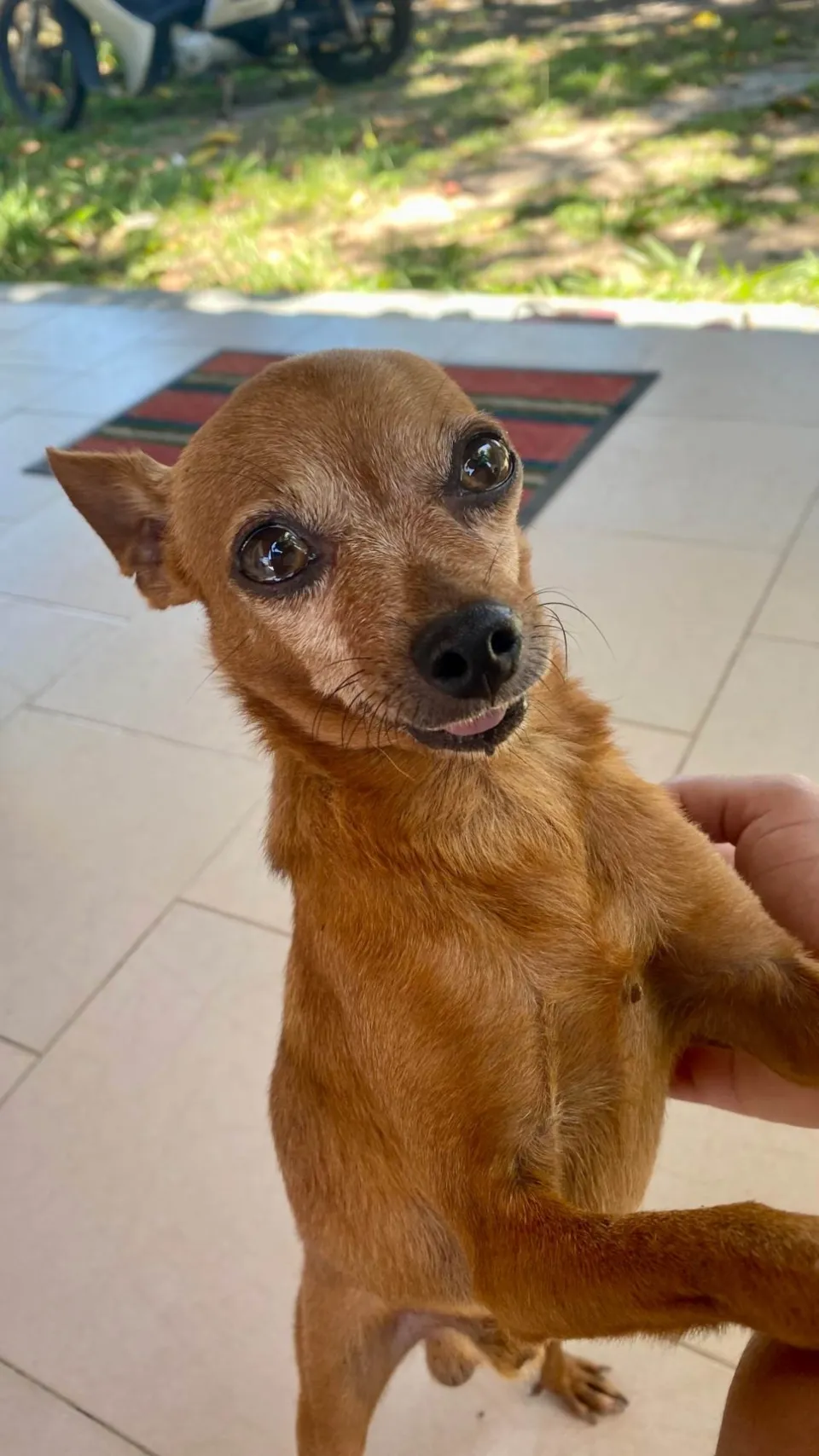 Sukito pertencia a minha mãe falecida e atualmente vivia com minha irmã em Iguaba, só que ela decidiu que não quer mais cuidar e no apartamento onde moro não aceitam animais estarei sujeito a multa e expulsão caso aconteça. Com muita dor no coração terei que doar ele