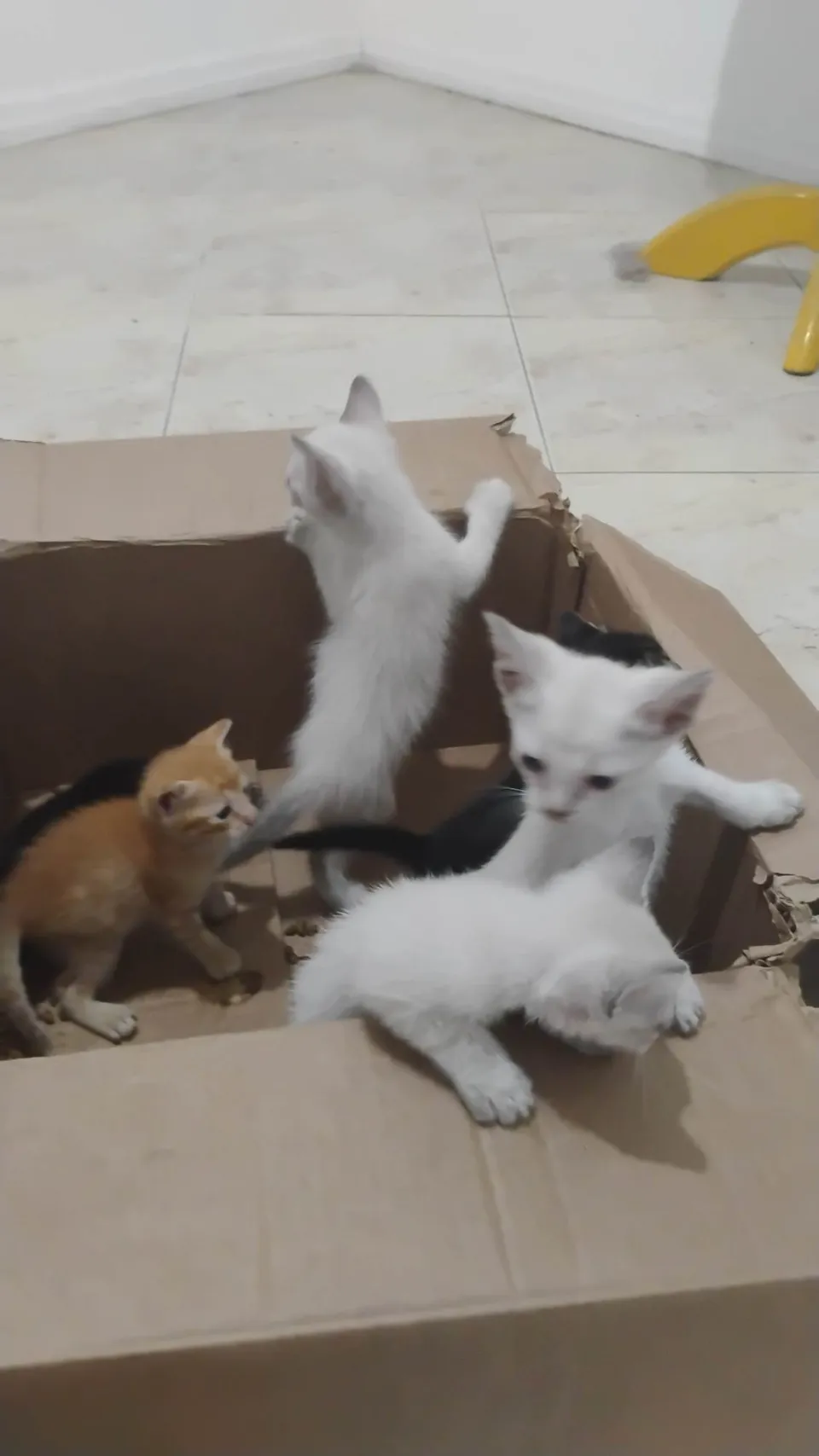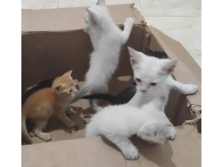 Estes três adoráveis gatinhos SRD-Vira Lata estão em busca de um lar acolhedor! Com pelagem branca e cinza e idade entre 2 a 6 meses, eles são a definição de fofura e alegria.