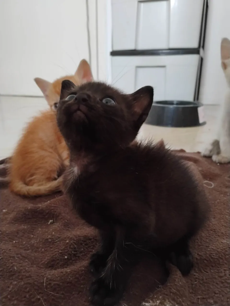 Conheça Jiji, uma adorável gatinha SRD de pelagem preta e menos de 2 meses de idade! Com o porte pequeno e um coração gigantesco, Jiji é o que você precisa para trazer alegria ao seu lar. Seu temperamento dócil e brincalhão a torna perfeita para interagir com crianças e até mesmo para fazer amizade com outros gatinhos.