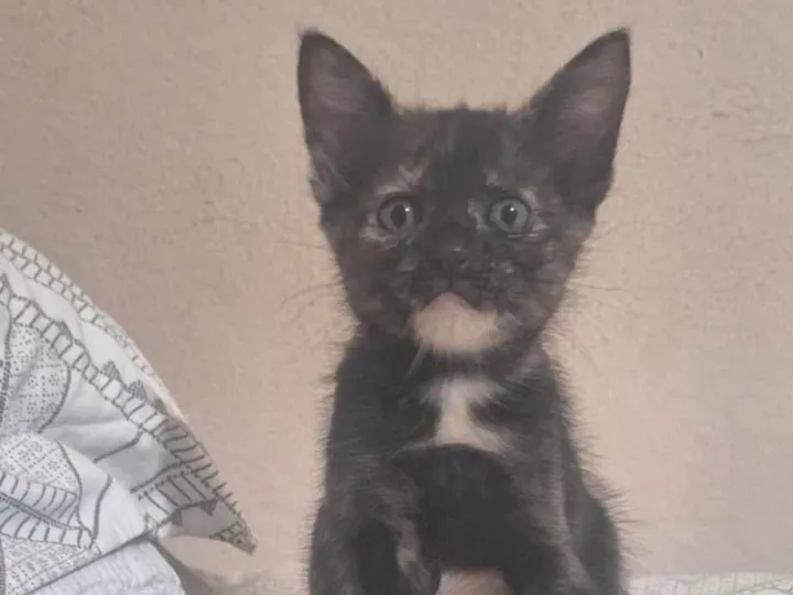 Linda do pelo mamchadinha, olhar carinhoso de uma menina, adora brincar de bolinhas,independente para dormir, merece todo amor, convive bem c outro gato. Tem irmãos p serem adotados tbm