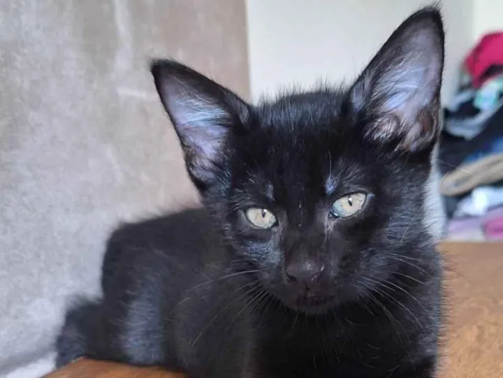 Pretinho do pelo brilhante, tem dois meses, vermifugado. Precisa de um lar que o ame, muito brincalhão c bolinhas, gosta de ração frango e carne, carinho p dormir na cama c humano, tem irmãos que podem ser adotados juntos, fará mais bem a ele ??