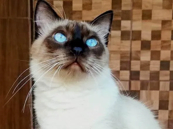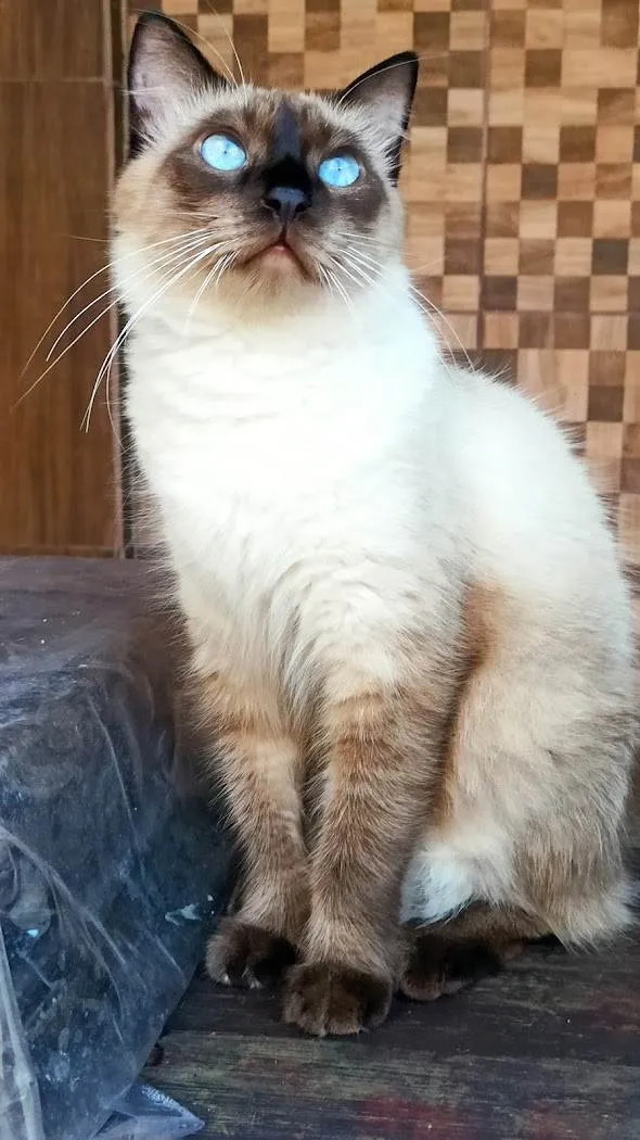 Desaparecido no Braga, em Cabo Frio, no dia 17/7 à noite. Siamês com pelagem clássica, carinha, orelas, rabo, pés e mãos marrons bem escuros, quase preto. Restante do corpo caramelo claro. Olhos muito azuis durante o dia! Muito dócil, quando estava conosco em casa não costumava estranhar pessoas, ia com qualquer desconhecido, mas agora que está fora não sei como está seu comportamento. Não gosta muito de colo.