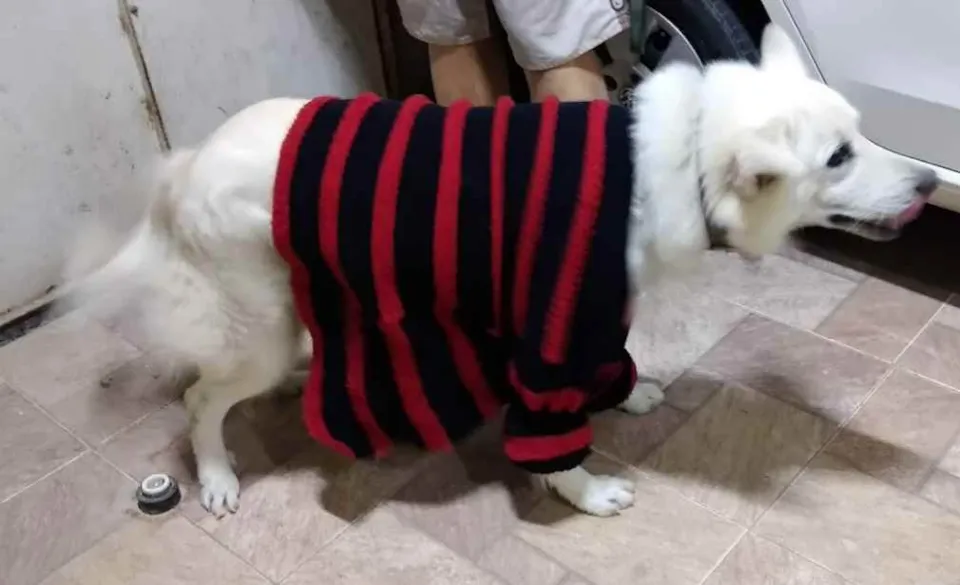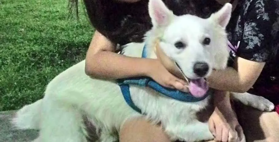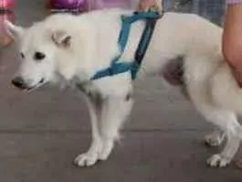 Branco, com 4 patas, 1 rabo, 9 anos, vacinas em dia, sem doenças crônicas. Manso, mas vigilante. Gosta de passear e se esfregar na grana.
