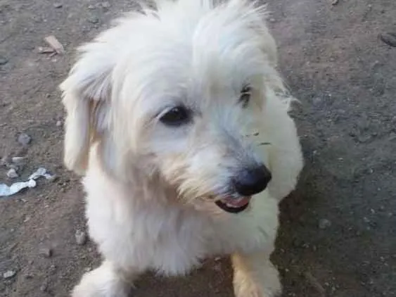Atende pelo nome de mel.tem 2 anos é castrada.poodlo mestiça branca.peluda mas ta curto.fugiu dia 15 abril as 19h.rua genario correia 2.pq.aeroporto campos goytacazes.rj.