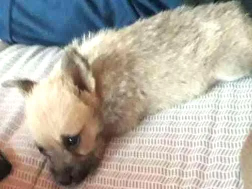 Achamos essa cadela perdida junto a outro filhote, encontramos detro de uma caixa, próximo onde moro.