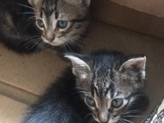 Deixaram 2 gatinhos em frente ao meu portão, um estava quase sendo atropelado, não posso ficar com eles e procuro alguém que queira ter um filho de quatro patas.
