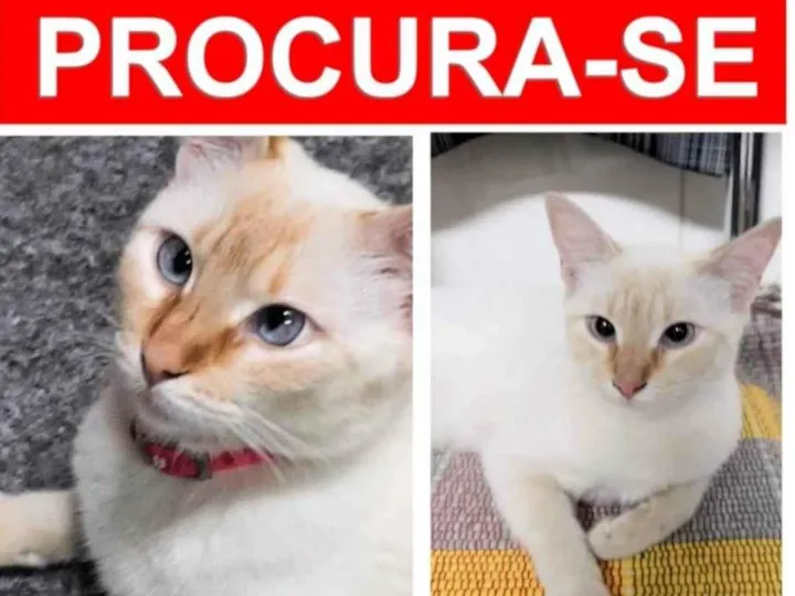 Gata de pelagem clara, olhos azuis, vesga, está com coleira rosa com o endereço no avesso, caiu do muro na Rua Manuel Vieira e foi vista na Rua Luis Guimarães no Centro em Duque de Caxias -RJ. É muito assustada e mansa, ninguém a viu morta pela rua então talvez possa estar com alguém.