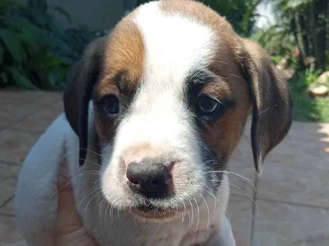 Filhotes destinados à adoção. O pai não tem raça definida e a mãe é boxer