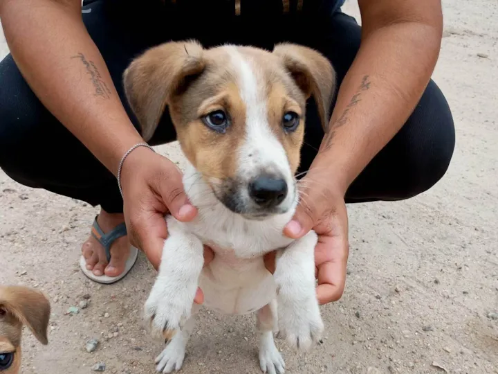 Resgatei essa filhotinha de aproximadamente 2, 3 meses, aparentemente porte médio que estava na rua precisando de cuidados. Porém não tenho condições de permanecer com ela. Ela já recebeu vermífugo, ela está e é brincalhona, carinhosa e cheia de energia.Ela merece encontrar uma família amorosa e responsável, que possa oferecer carinho e um lar seguro para crescer saudável.