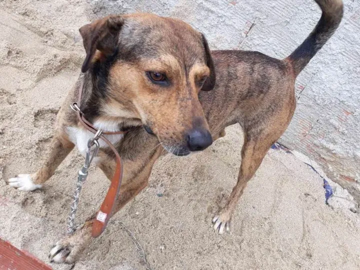Este cão anda pelas ruas do condomínio onde moro e não tem dono. Não podemos ficar com ele, pois ele briga com os dois cães que já temos (já tentamos colocá-los juntos). Gostaria de saber se alguém quer adotá-lo, pois há moradores que se incomodam com a presença dele. Vamos castrá-lo e a NOSSA VIZINHA SE COMPROMETE A DAR ALIMENTAÇÃO E MEDICAMENTOS (este último caso seja necessário) para quem for ficar com ele. Ele deve ter uns 05 anos de idade, pesa uns 20 quilos, é forte, sadio e brincalhão. O nosso condomínio é o Parque das Palmeiras, no bairro Caluge, em Itaboraí. Interessados, favor entrar em contato via mensagem privada. Agradeço pelo atenção.