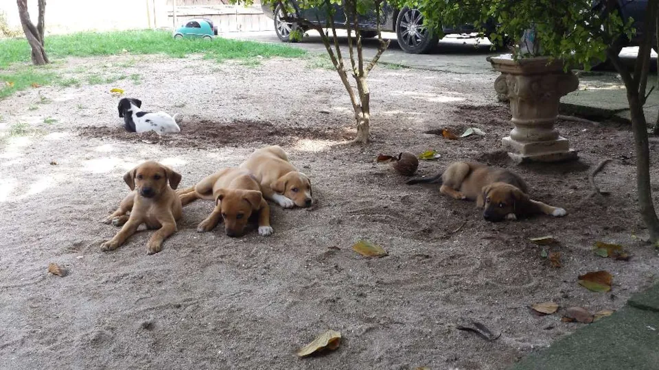 São 5 animais, 3 fêmeas e 2 machos para adoção. Tem 2 meses e ficam de porte médio (10kg).