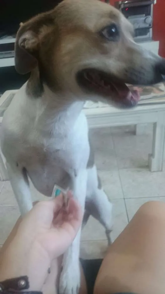 Pelagem clara com manchas,tem o rabinho enrolado pra cima,muito dócil e bem medrosa. Tem alergia a picadas de pulgas,podendo ter queda de pelos e até feridas por motivo das coceiras. Ele fugiu da Rua Mena Barreto,centro. Próximo ao Colégio Nilo Peçanha.